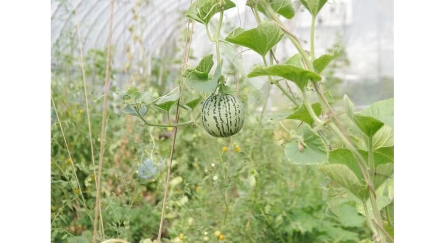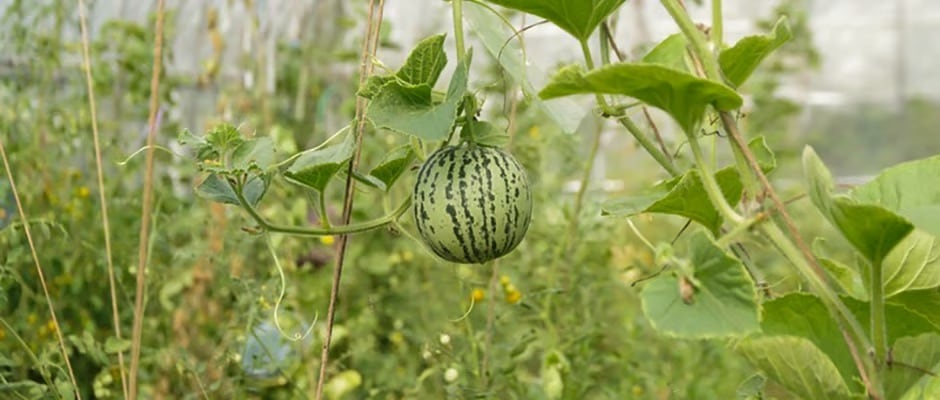チャルジョウ西会津のメロンやミニトマトはハウス内で使われていますが、ハウスの中はまるでジャングルです。