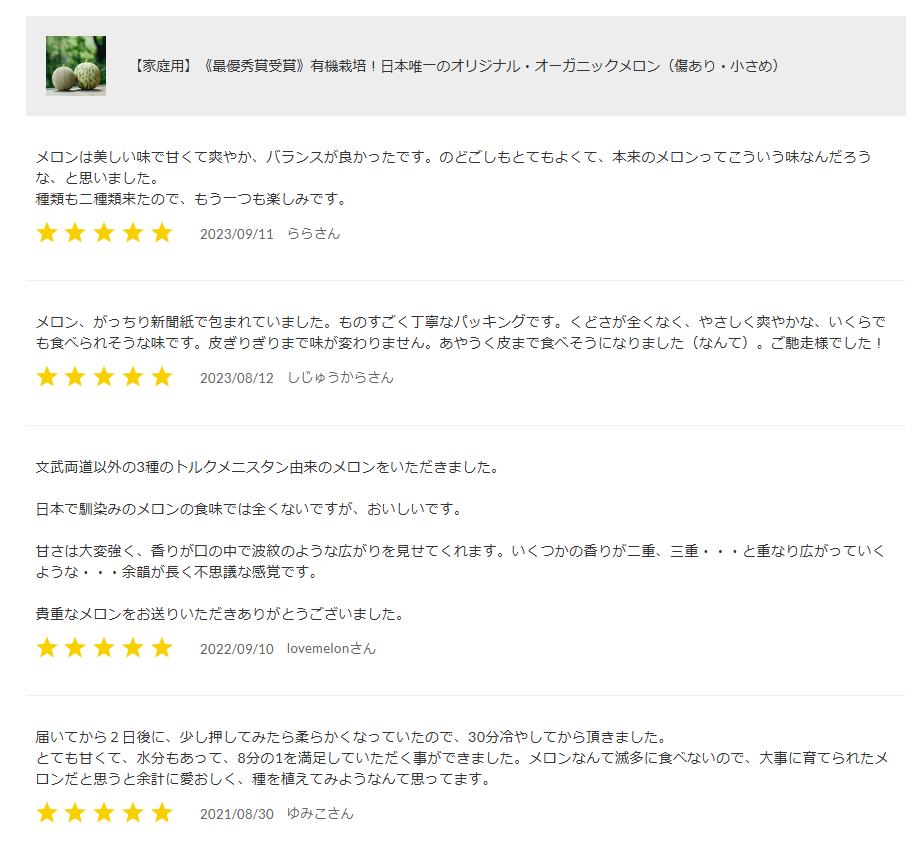 メロンが苦手な方も「美味しい」と驚かれたり、アレルギー反応が出ないと言われたりしたこともあります。