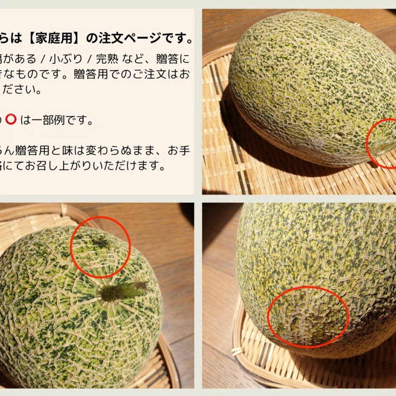 【家庭用】《最優秀賞受賞》有機栽培!日本唯一のオリジナル・オーガニックメロン(傷あり・小さめ)
